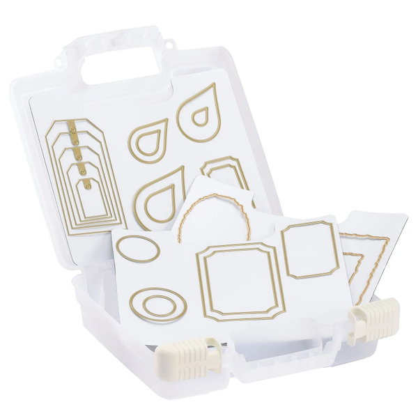 Deze opbergdoos van Vaessen Creative biedt een praktische en duurzame oplossing voor het veilig en georganiseerd bewaren van snijmallen. De map is uitgerust met 3 magneetvellen. Dit zorgt ervoor dat je snijmallen altijd netjes op hun plek blijven, zonder te verschuiven of kwijt te raken. Deze opbergbox is ideaal om thuis te gebruiken, maar ook eenvoudig mee te nemen naar knutselbijeenkomsten of workshops dankzij de sluiting en het stevige handvat.